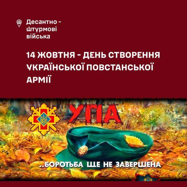 14 жовтня Україна відзначає День створення Української Повстанської Армії (УПА) — військово-політичного формування, заснованого у 1942 році, яке стало символом боротьби українського народу за незалежність, соборність та державність у ХХ столітті.