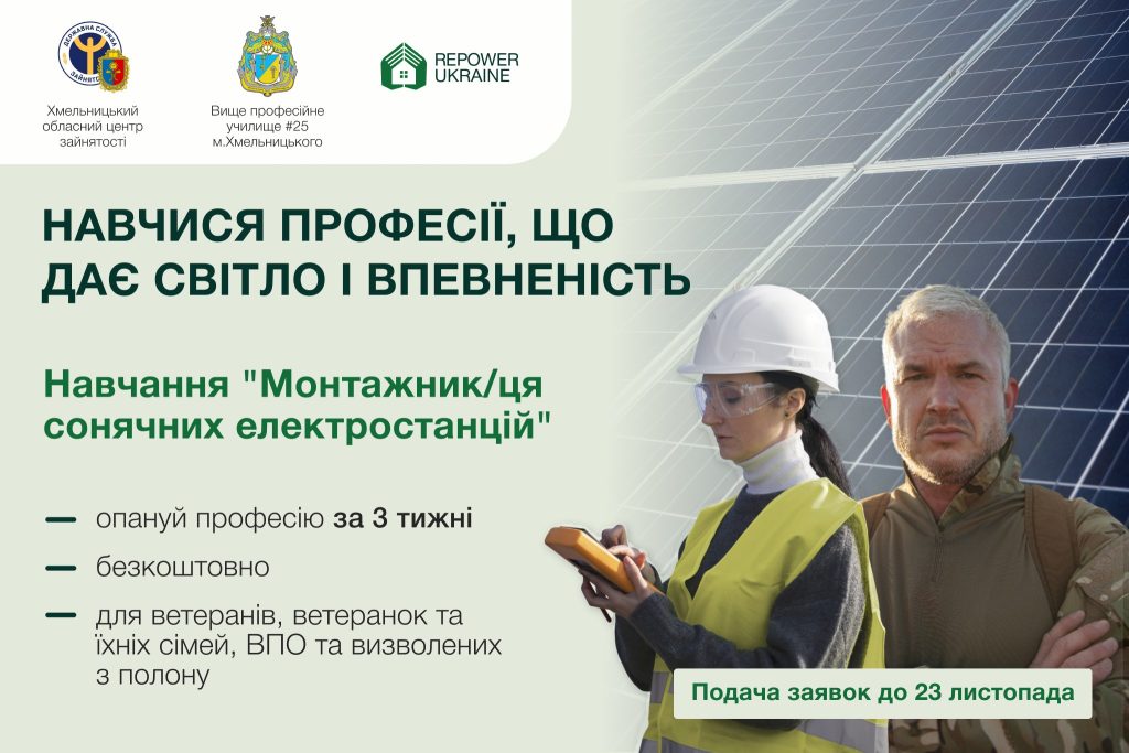 Вище професійне училище №25 м. Хмельницького спільно з партнерами запрошує на навчання за затребуваною професією монтажника сонячних електростанцій.