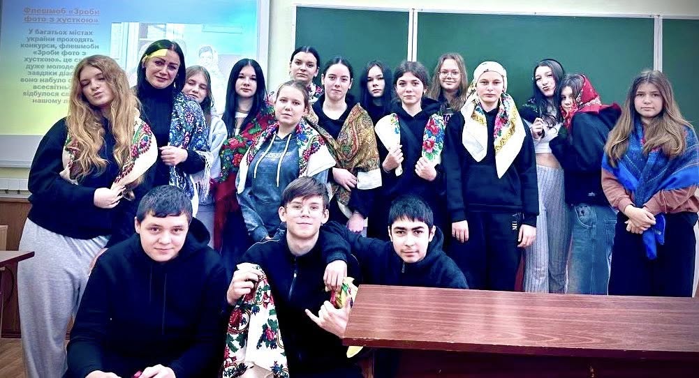 У Вищому професійному училищі №25 м. Хмельницького здобувачі освіти та педагоги долучилися до відзначення Дня української хустки. Класний керівник Наталя Салабай разом із групою 1АП провели змістовну зустріч «Хустка, що зберігає історії». Під час заходу здобувачі освіти ділилися родинними історіями про хустки, що передаються з покоління в покоління як символ любові, шани та оберегу.