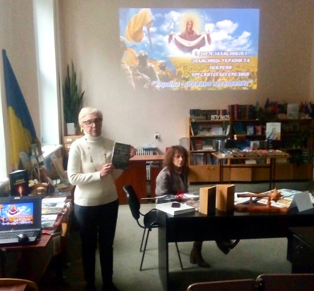 Напередодні Дня захисників та захисниць України у бібліотеці Вищого професійного училища №25 м. Хмельницького відбувся зворушливий та глибокий патріотичний захід «Нескорені духом»: Поетичний голос України. Його підготували та провели вихователі Олексій Радецький та Зоя Сова спільно із завідувачем бібліотеки Людмилою Романовою.