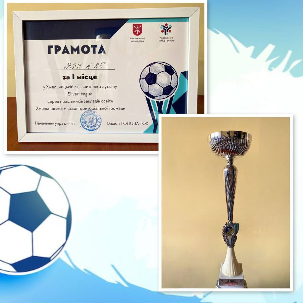 Вище професійне училище №25 м. Хмельницького вітає команду педагогів із вагомим досягненням — здобуттям І місця у Хмельницькій лізі вчителів з футзалу (Silver League) серед працівників закладів освіти Хмельницької міської територіальної громади. Під час урочистої церемонії нагородження відзнаки переможцям вручив міський голова Олександр Симчишин, відзначивши високий рівень підготовки, згуртованість та спортивну майстерність команди. Особливі вітання педагогам, які були відзначені в індивідуальних номінаціях: Віталій Семенчук — «Кращий захисник», Максим Жиловський — «Кращий воротар». Висловлюємо щиру подяку всім учасникам команди за наполегливість, відповідальність і командний дух: Андрію Папіровичу, Максиму Ємцю, Вячеславу Правурі, Олексію Кибалку, Михайлу Рабієвському, Сергію Подворному, Денису Берчуку. Колектив Вищого професійного училища №25 м. Хмельницького пишається досягненнями своїх колег та бажає нових перемог, невичерпної енергії, міцного командного духу і подальших спортивних здобутків.