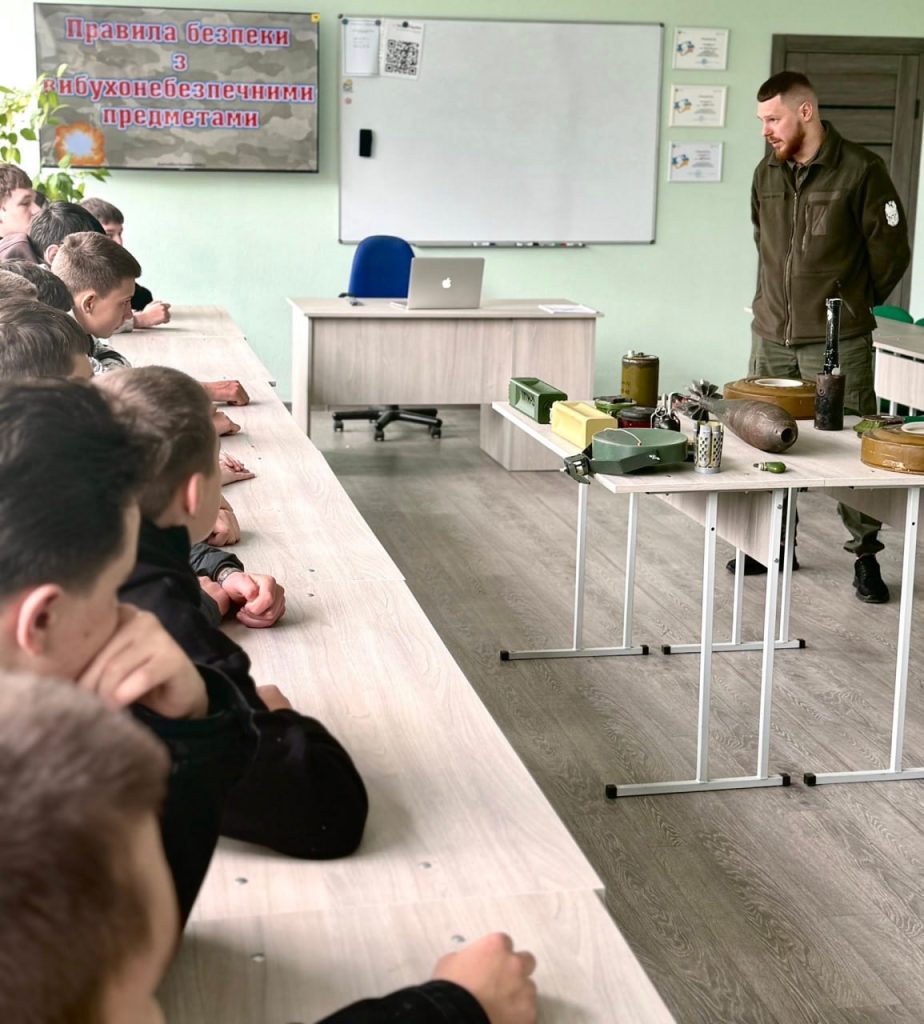 У межах тематичного тижня викладач предмета «Захист України» Денис Берчук провів відкритий урок на тему «Вибухонебезпечні предмети. Правила поводження і дії запобігання нещасних випадків». Під час заняття учасники обговорили способи розпізнавання потенційно небезпечних предметів, ознайомилися з алгоритмом дій у разі їх виявлення та повторили основні правила мінної безпеки.