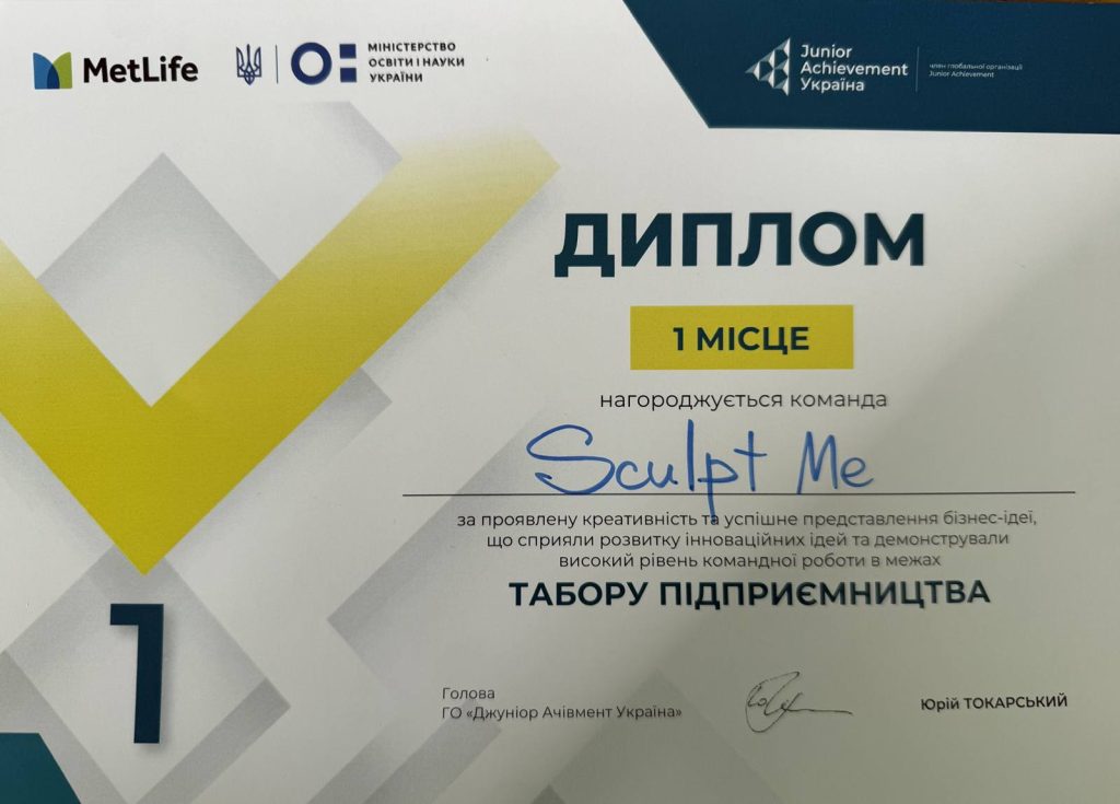 Перше місце виборола мінікомпанія «SkulptMe» (керівник — Мельникова Тетяна), продемонструвавши переконливий захист бізнес-ідеї та високий рівень підготовки.