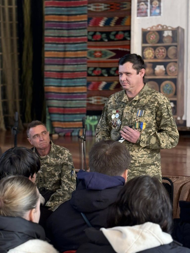 Під час зустрічі військові поділилися своїми історіями служби, розповіли про будні перебування у зоні бойових дій, непрості рішення, бойові завдання та взаємопідтримку побратимів. Незважаючи на стан здоров’я та вік, вони продовжують служити Україні у тилу — займаються волонтерською діяльністю, підтримують підрозділи та проводять просвітницькі заходи для молоді.