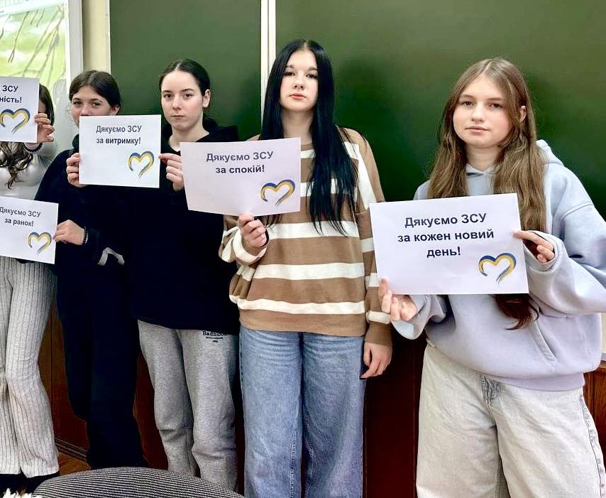 Група 13А разом із класним керівником Валентиною Мирошниковою долучилася до Всеукраїнського флешмобу, створивши листи-подяки українським військовослужбовцям. Частину листів учні передадуть своїм батькам, які нині захищають державу. - Онлайн-бесіда до Дня ЗСУ.
